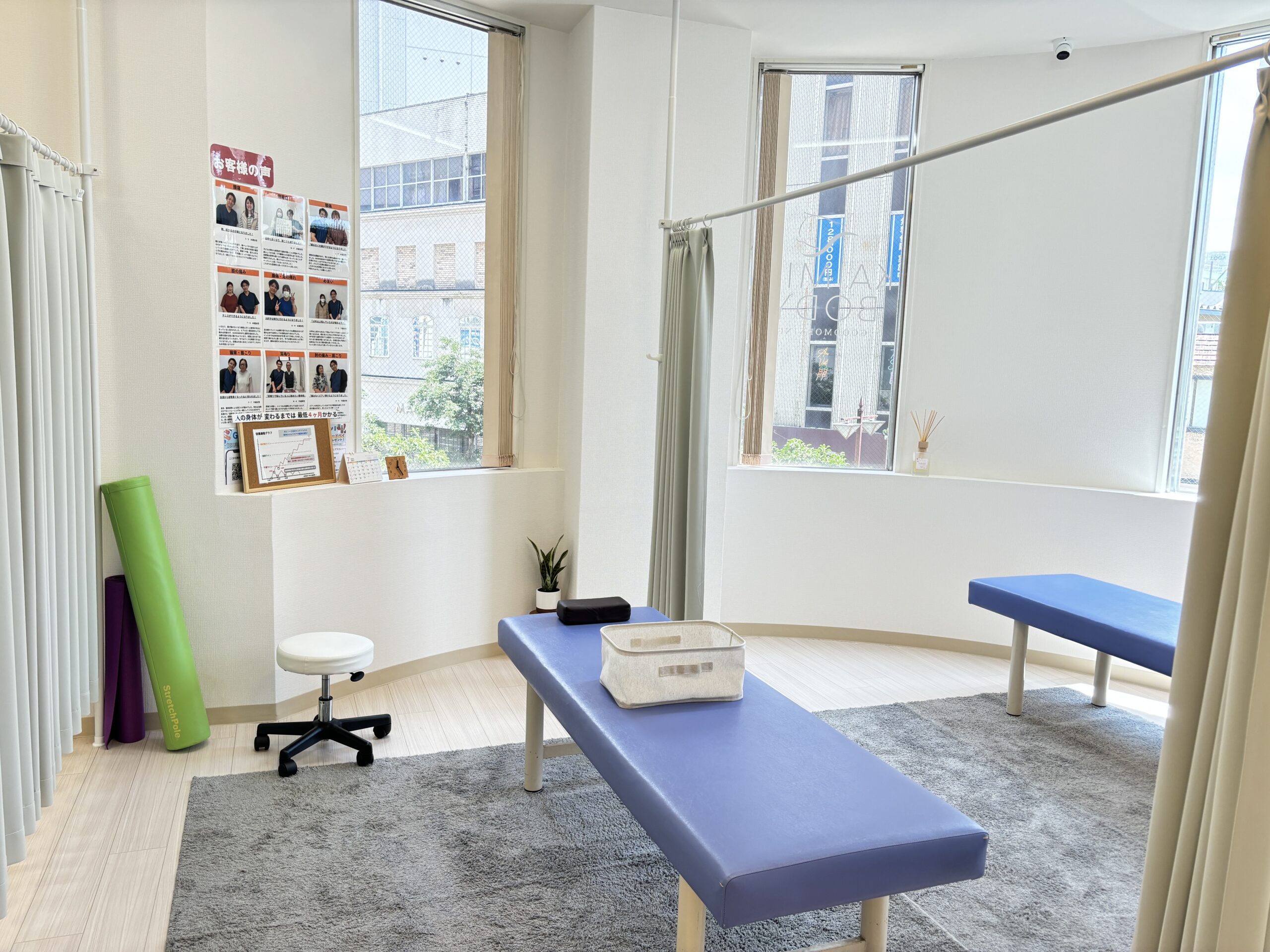 院内は清潔で、リラックスできる雰囲気が広がっており、患者が安心して施術を受けられる環境が整っています。スタッフは親切で丁寧な対応を心がけており、初めての方でも安心して通院できる点が魅力です。また、久留米駅から近い立地にあるため、アクセスも便利で通いやすいこともポイントです。